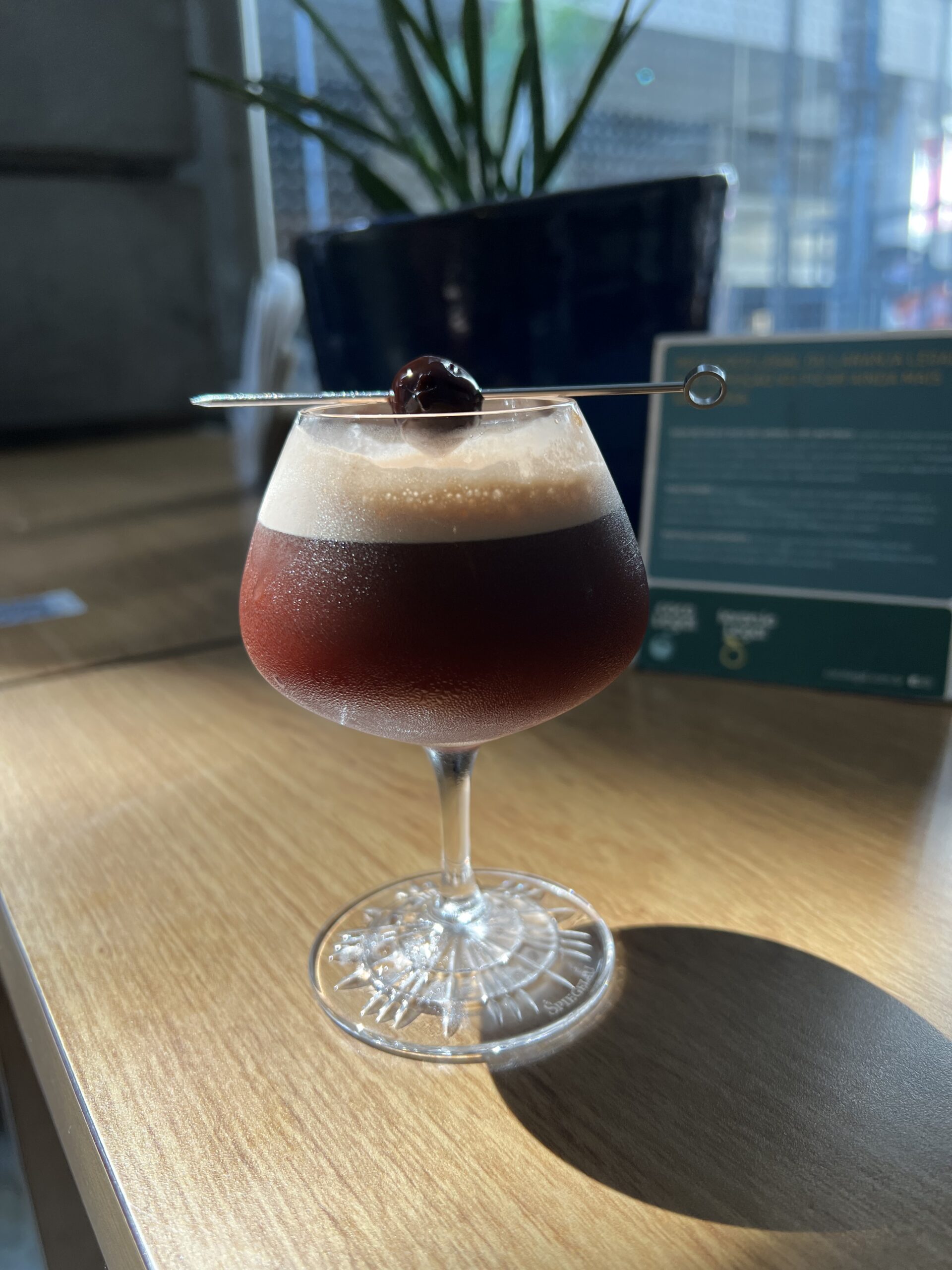 Um Mocktail elaborado pelo Barista Gabriel, com perfil mais frutado e doçura vibrante corpo intenso os ingredientes são: Espresso/ amarena/ xarope davinci Blood Orange/ Cranberry solução málica e salina.